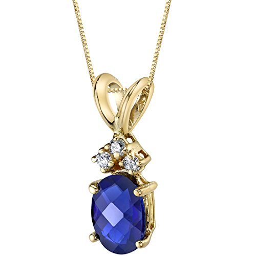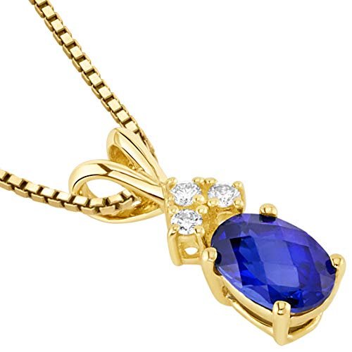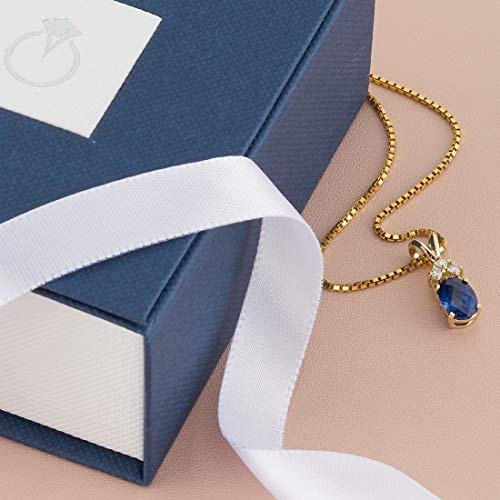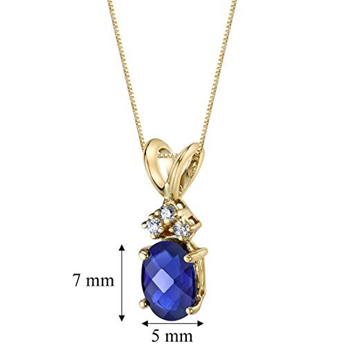 PEORA 14K Yellow Gold Created Blue Sapphire with Genuine Diamonds Pendant, Dainty Solitaire, Oval Shape, 7x5mm, 1 Carat total, Sparkling Blue Sapphire Jewelry, September Birthstone Gift
