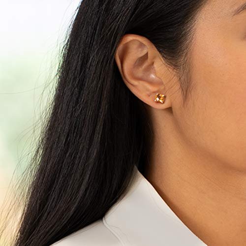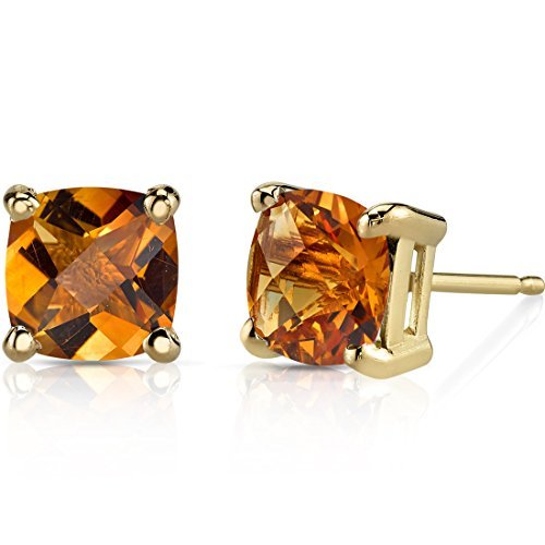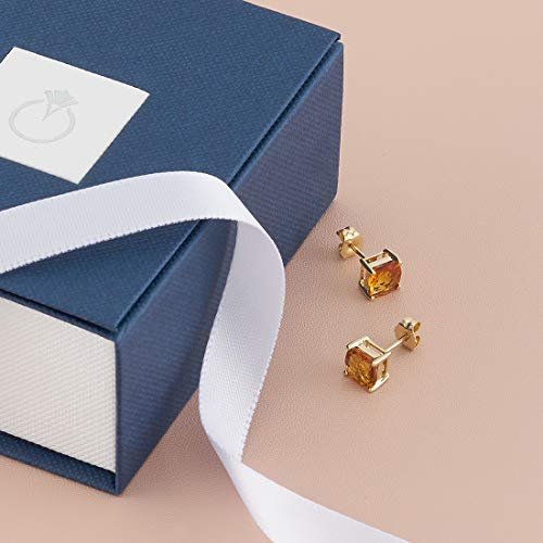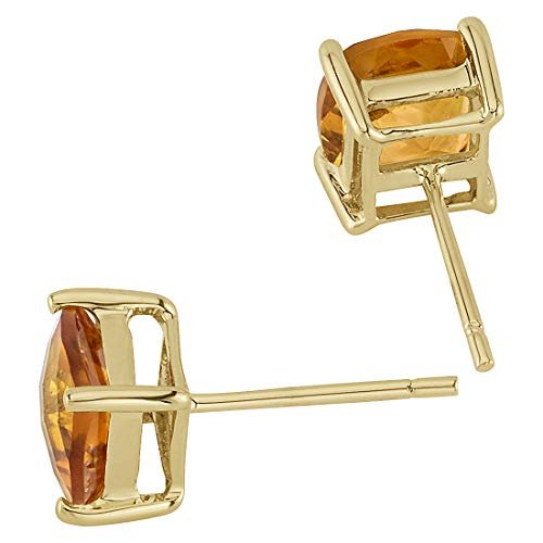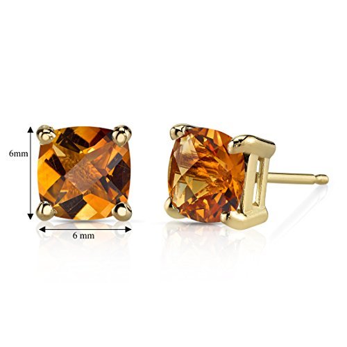 Peora 14K Yellow Gold Genuine Citrine Stud Earrings for Women, 1.75 Carats total Cushion Cut 6mm, Friction Back, November Birthstone Earrings Gift, Yellow Citrine Gold Stud Earrings