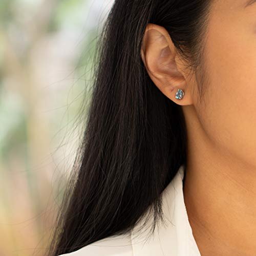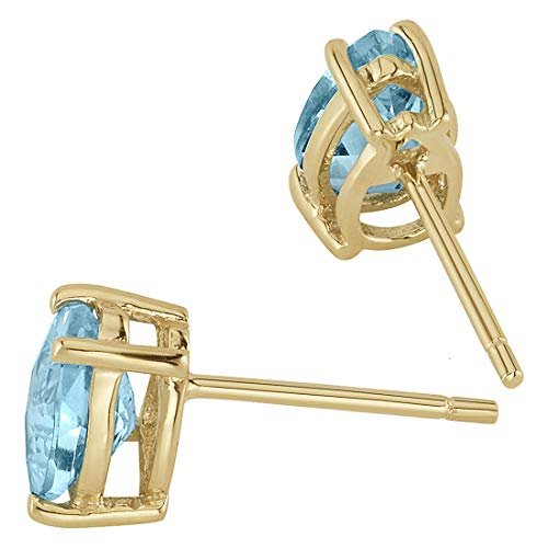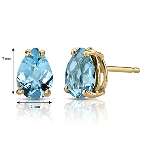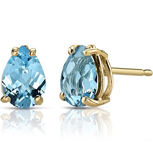 Peora 14K Yellow Gold Swiss Blue Topaz Earrings for Women, Genuine Gemstone Solitaire Studs, 7x5mm Pear Shape, 1.50 Carats total, Friction Back, Blue Earrings, December Birthstone Earrings