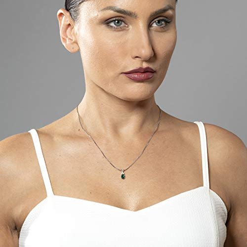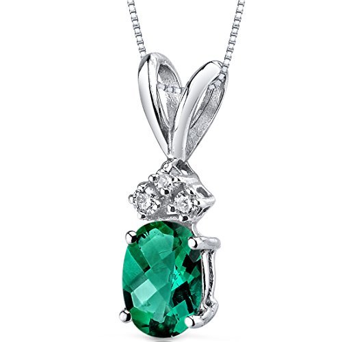 PEORA Created Emerald with Genuine Diamonds Pendant in 14 Karat White Gold, Dainty Solitaire, Oval Shape, 7x5mm, Green Emerald Jewelry, May Birthstone, Gifts for Birthday, Anniversary, Wedding
