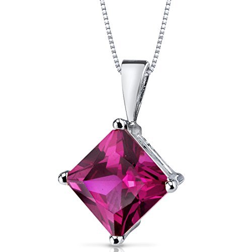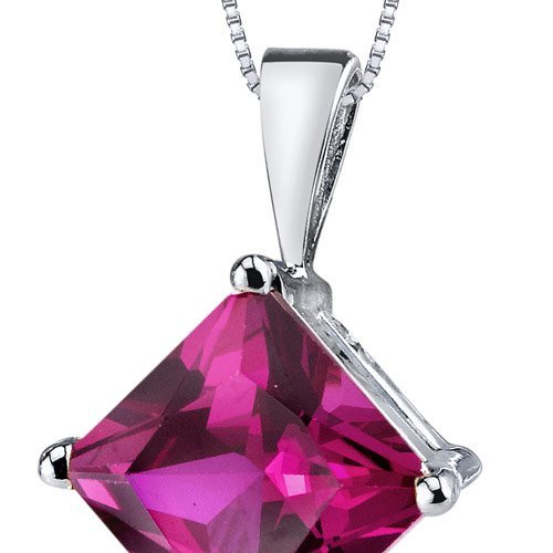 PEORA Created Ruby Pendant in 14 Karat White Gold, Classic Solitaire, Princess Cut, 8mm, 3 Carats total, Valentine’s Gift for Her, Wife, Sister, Women Gift Ideas w/Jewelry Box