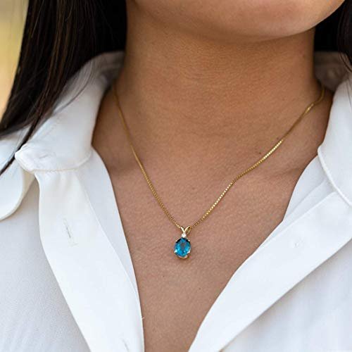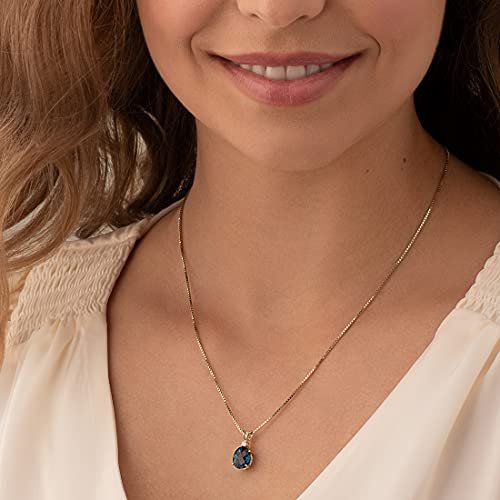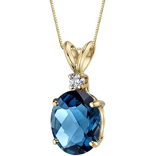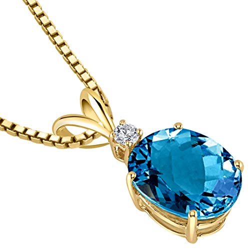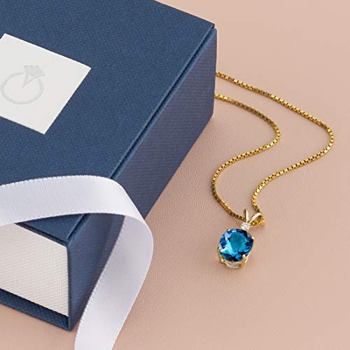 PEORA London Blue Topaz with Diamond Pendant for Women 14K Yellow Gold, Genuine Gemstone Solitaire, 3 Carats Oval Shape, 10x8mm, December Birthstone Necklace, Gold Necklace, w/Jewelry Box