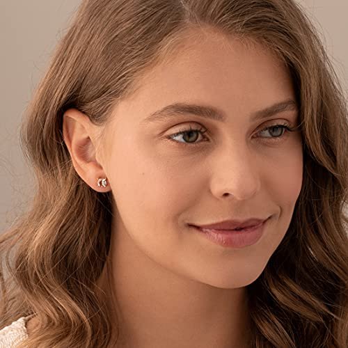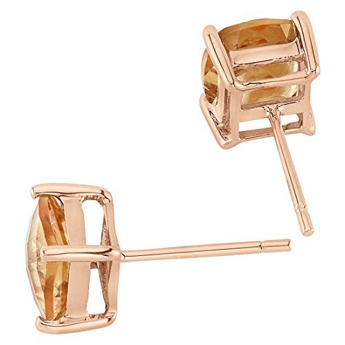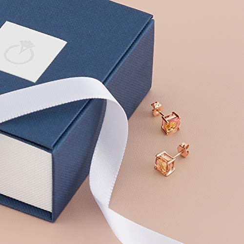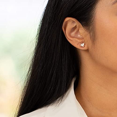 Peora Solid 14K Rose Gold Morganite Stud Earrings for Women, Genuine Gemstone Classic Solitaire, Cushion Cut 6mm, 2 Carats total, Friction Back, Pink Peach Morganite Earrings, Fine Gold Jewelry