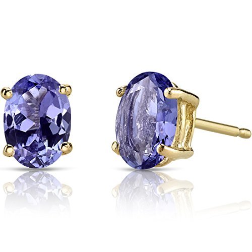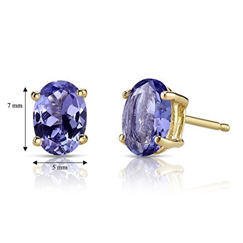 Peora Solid 14K Yellow Gold Tanzanite Earrings for Women, Genuine Gemstone Classic Solitaire Studs, 7x5mm Oval Shape, 1.50 Carats total, Friction Back, Tanzanite Gold Earrings, Dainty Earrings Studs