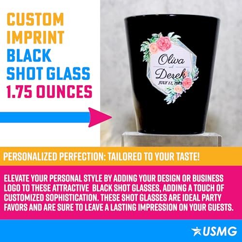 Personalized Black Shot Glasses – 1.75 oz, Custom Full Color Imprint for Events, Parties, and Promotions (QTY, 100)
