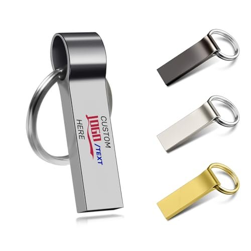 Personalized Metal USB Flash Drive with Gift Box, 50 Pack Custom USB 2.0 Pen Drive Memory Stick with Keychain, Ideal for Corporate Gifts, Business Events and Promotional Giveaways (64, GB)