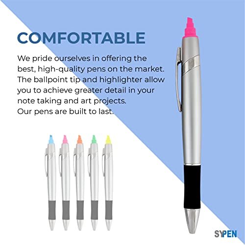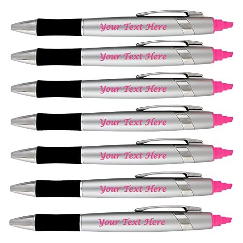 Personalized Pens with Highlighter -200 Pack Bulk-Free Imprint – 2 In Bible Highlighter with Ballpoint Pen Combo- add Custom Name, Logo or Gift Message- Black Ballpoint Ink, Pink Highlighter Color