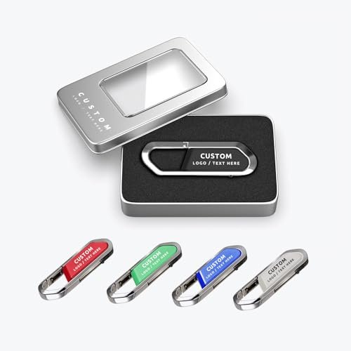 Personalized USB Flash Drive, 50 Pack Custom Metal Thumb Drive USB 2.0 Memory Stick Pen Drive with Hook, Ideal for Corporate Gifts, Business Events and Promotional Giveaways (4 GB,with Metal Box)