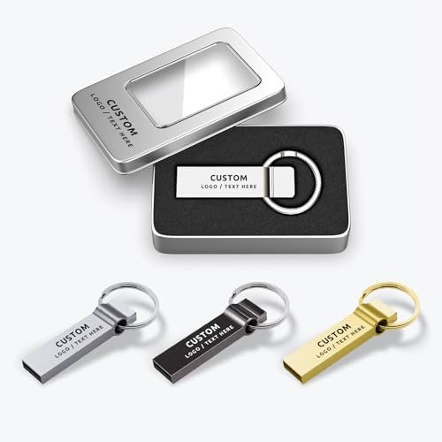 Personalized USB Flash Drive, 50 Pack Custom Thumb Drive USB 2.0 Memory Stick Pen Drive with Keychain, Ideal for Business, Education, Corporation, Photography & Music Studio (256 MB,with Metal Box)