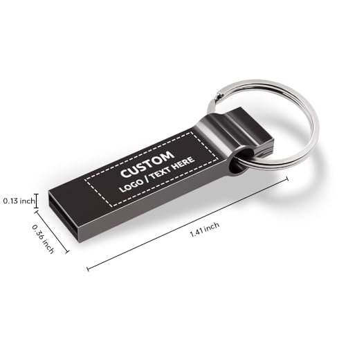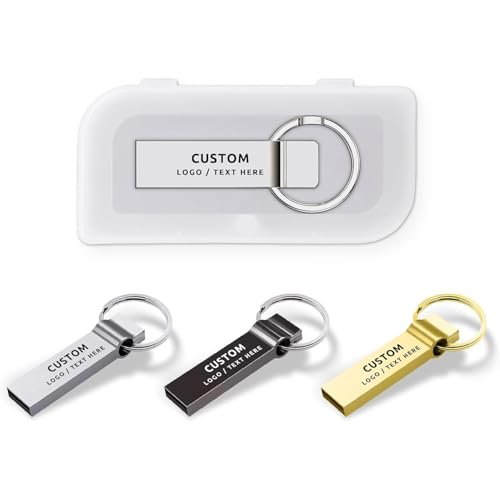 Personalized USB Flash Drive with Plastic Box, 50 Pack Custom Metal USB 2.0 Memory Stick Thumb Drive with Keychain, Ideal for Corporate Gifts and Business Promotional Giveaways (64, GB)