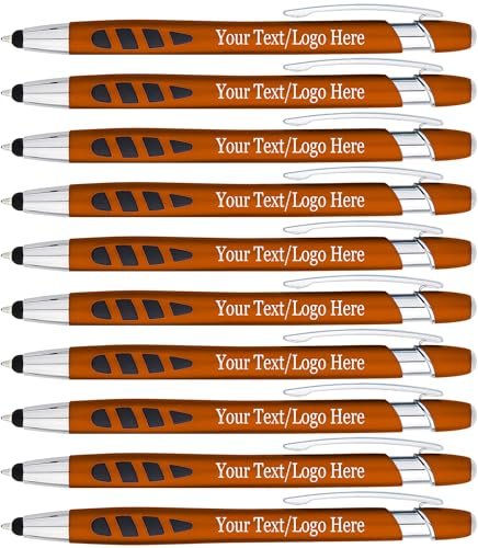 Personalized With your Custom Logo or Text Pens-300 Pack Bulk-for Businesses, Parties, and Events, 2 in 1 Capacitive Stylus & Ballpoint Pen compatible with most touchscreen Devices, Orange