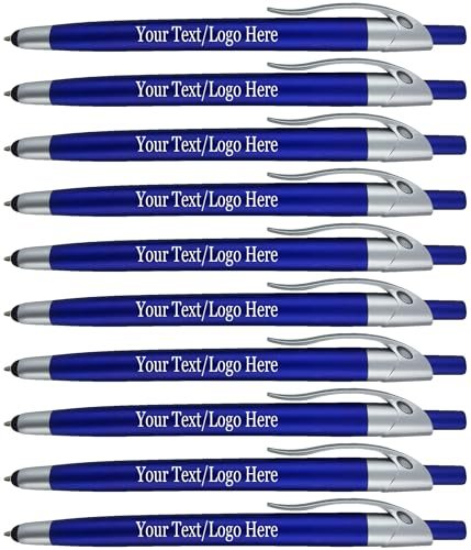 Personalized With your Custom Logo or Text Pens-Pack of 450- for Marketing, Parties, and Events, 2 in 1 Capacitive Stylus & Ballpoint Pen Compatible With Touchscreen Devices, Black Ink, Blue Pens
