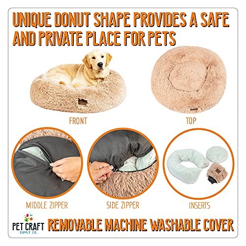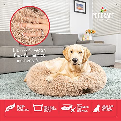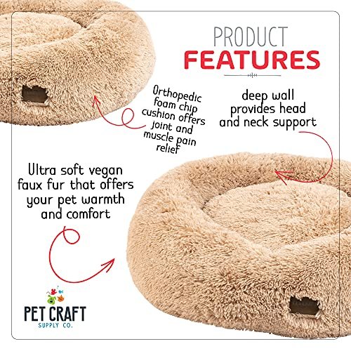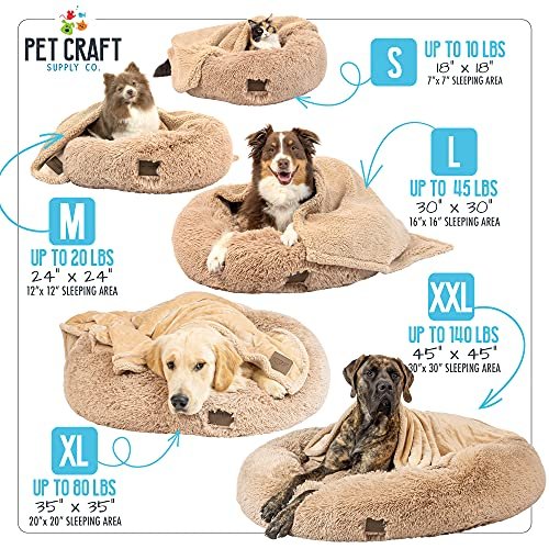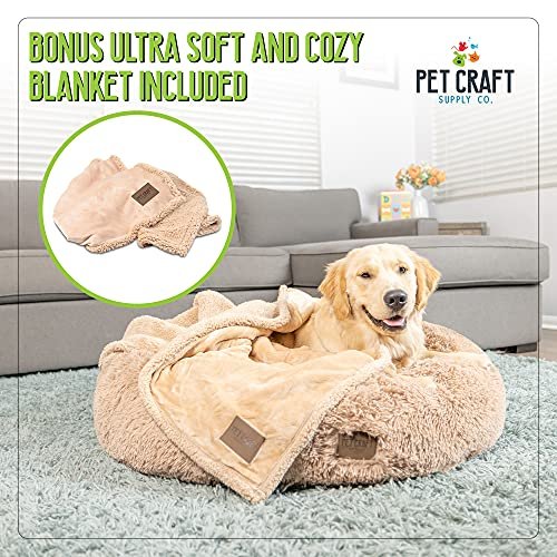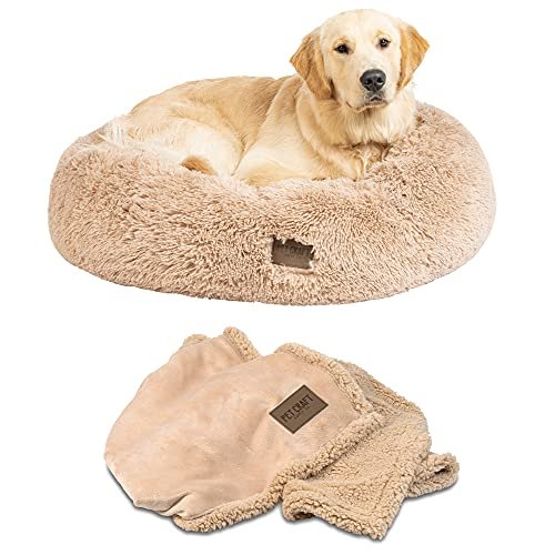 Pet Craft Supply Wellness Calming Dog Bed for Small Dogs – Cat Bed for Indoor Cats – with Bonus Matching Dog Blanket Cat Blanket to Combat Anxiety XLarge