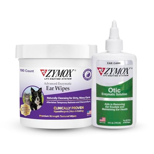 PET KING BRANDS ZYMOX Enzymatic Ear Wipes and Otic Solution Hydrocortisone Free for Dogs & Cats – Product Bundle – for Dirty, Waxy, Smelly Ears & to Soothe Infections, 100 Count Wipes & 4oz Bottle