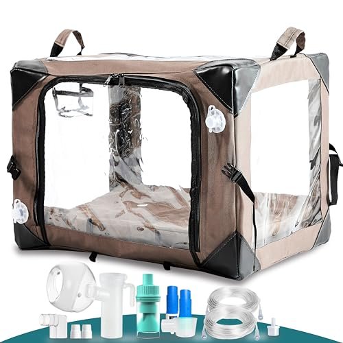 Pet Oxygen Cage for Cats and Dogs to Obtain Oxygen and Nebulizing Care, Tube Kit and Mat Included (Small Cage + O2)