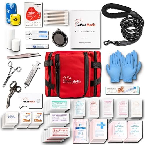 Pet Vet Medic Cat & Dog First Aid Kit – Dog Emergency Kit, Dog Health Supplies & Dog Wound Care -with Dog Thermometer, Dog Bandages for Wounds – Dog Essentials, Dog Travel Bag (Small)