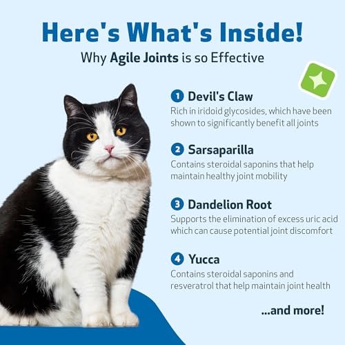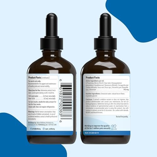 Pet Wellbeing Agile Joints for Cats – Veterinarian-Formulated – Hip and Joint Health, Mobility, Devil’s Claw, Boswellia, Joint Ligament and Cartilage – Herbal Supplement 4 oz (118 ml)