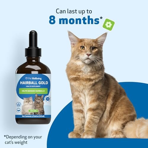 Pet Wellbeing Hairball Gold for Cats – Holistic Hairball and Digestive Care, Normal Elimination, Slippery Elm, MCT Oil, No Mineral Oil – Veterinarian-Formulated Herbal Supplement 4 oz (118 ml)
