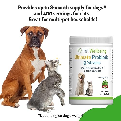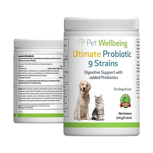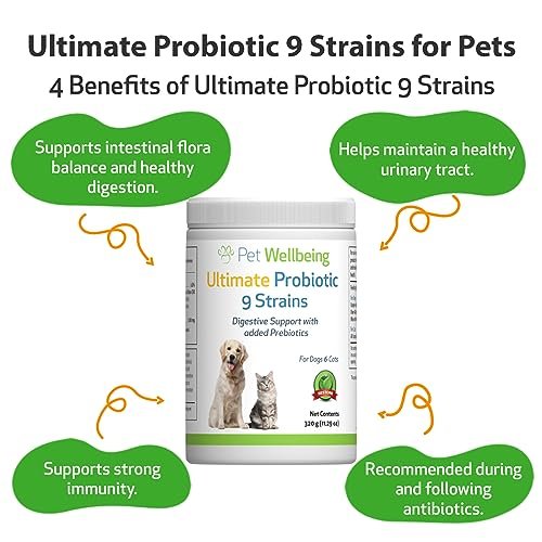 Pet Wellbeing Ultimate Probiotic 9 Strains for Dogs & Cats – Supports The Gut Microbiome and Digestion, Immune System Care, Urinary Tract Health, FOS, 2.5 Billion CFU – 11.29 oz (320 g) Powder