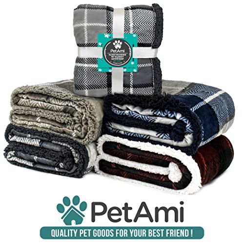 PetAmi Dog Blanket for Medium Large Dogs, Pet Bed Blanket Cat Puppy Kitten, Fleece Furniture Couch Cover Protector Sofa Car, Soft Sherpa Dog Throw Plush Reversible Washable, 40×60 Plaid Taupe