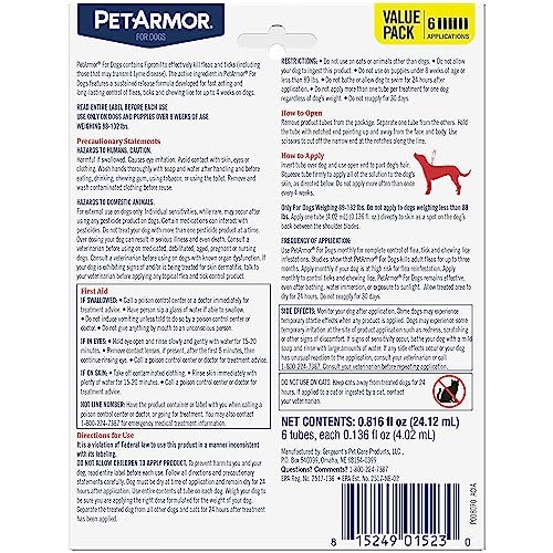 PetArmor for Dogs, Flea and Tick Treatment for Extra Large Dogs (89-132 Pounds), Includes 6 Month Supply of Topical Flea Treatments