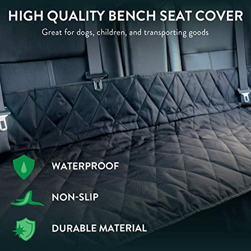 Plush Paws Products Convertible Just Bench Seat Protector | Diamond Stitching | Washable & Waterproof Bench Seat Dog Cover Car, Truck, & SUV | Nonslip, Tear Resistant Pet Seat Cover | Black