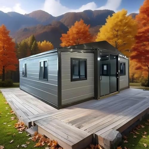 Portable Prefabricated Tiny Home for Sale, 19x20FT Prefab Modular Home with 2 Bedrooms, 1 Equipped Full Bathroom & Kitchen, Expandable Container House to Live in for Adults