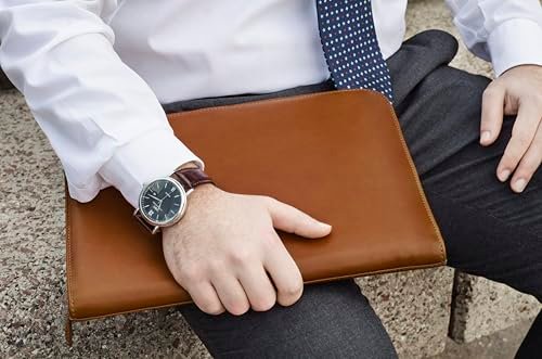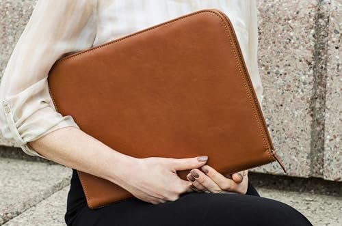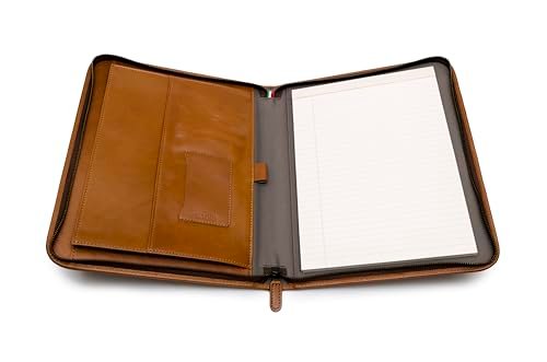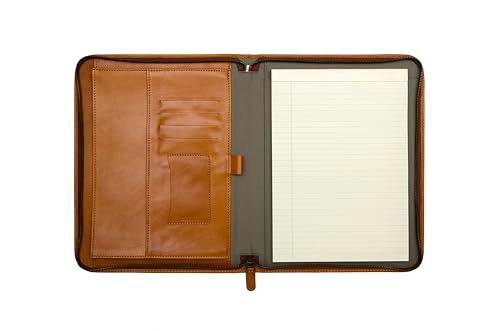 Premium Maruse Leather Portfolio Padfolio – Executive Folio for Men and Women with Zipper, Folio Document Organizer, Laptop Sleeve, iPad Case and Folder – Made in Italy, Honey