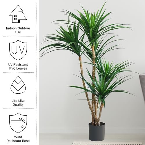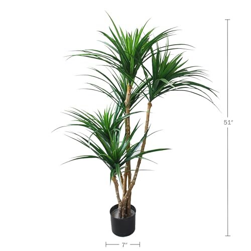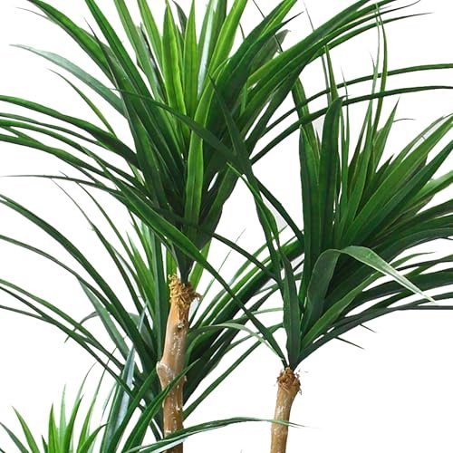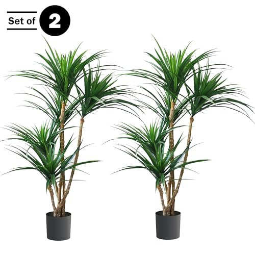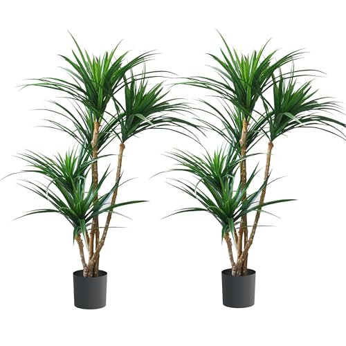 Pure Garden Set of 2 Artificial Trees – 51-Inch Tropical Yucca Plants with Rubber Leaves and Weighted Pots for Living Room or Office – Faux Plants