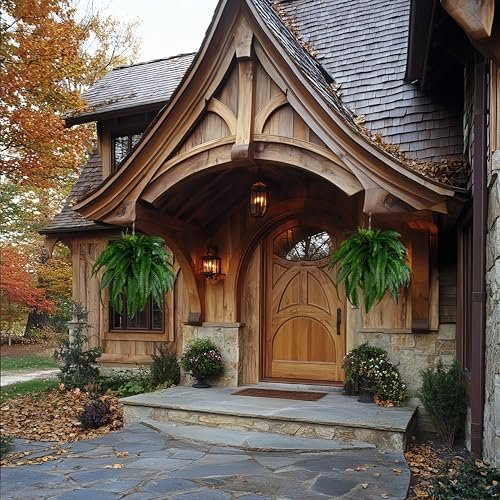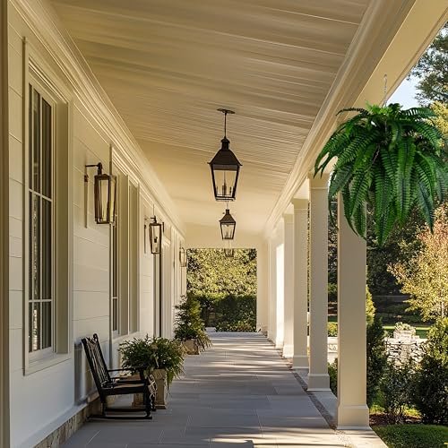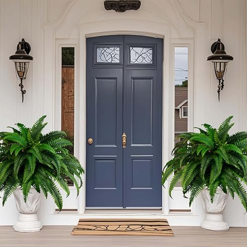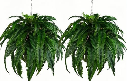 QIANYUN Outdoor Artificial Plants-2PCS Artificial Outdoor Hanging Fern Faux Greenery UV Resistant Plastic Plants for Front Porch Living Room Garden Decor- Including Hanging Planters (Dark Green)