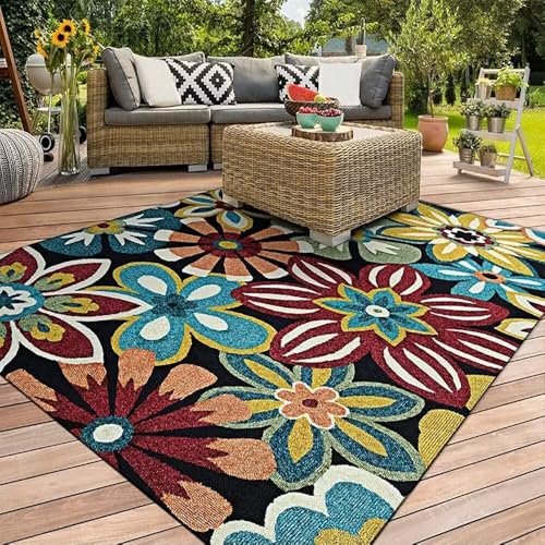 Qkjtyt Colorful Abstract Floral Rugs 5’x8′ for Living Dining Room Modern Flower Print Bedroom Area Rug Machine Washable Soft Cozy Carpet Non-Slip Mats