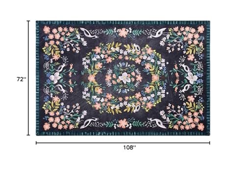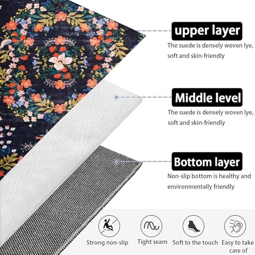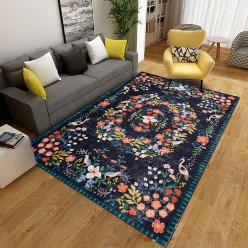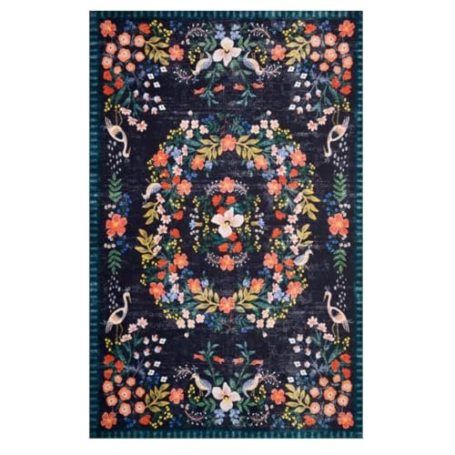 Qkjtyt Dark Navy Oriential Floral Area Rug Multicolor Flowers Print Rugs Home Office Carpet Floor Mats for Living Dining Room Bedroom,6’x9′