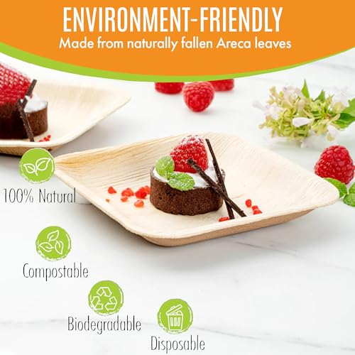 𝐕𝐚𝐥𝐮𝐞 𝐏𝐚𝐜𝐤: We offer a 50-piece value pack of 6-inch square palm leaf plates, perfect for any occasion such as weddings, BBQs, and camping trips. Our plates are economical and convenient, eliminating the need for washing dishes while reducing your carbon footprint. Our plates are the perfect solution for anyone looking for a sustainable and elegant dinnerware option.