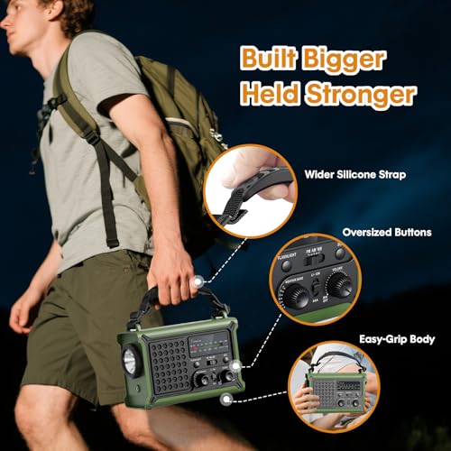 Faster Solar Charging & High-Efficiency Crank: The hand crank radio features a 5× larger high-efficiency monocrystalline solar panel and longer hand crank, converts solar and power 2x faster, ideal for campers & emergencies. Stay connected during blackouts, storms, or remote adventures.