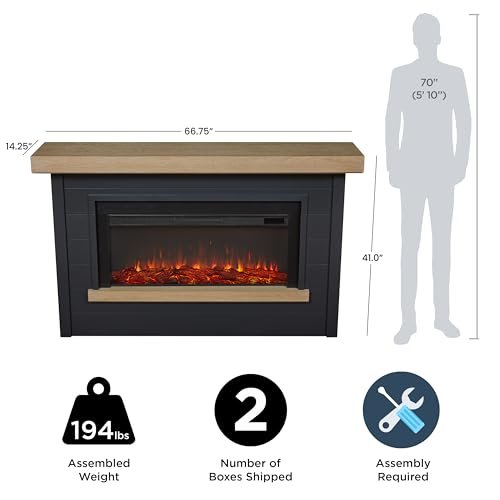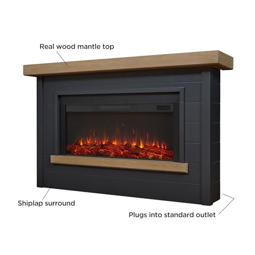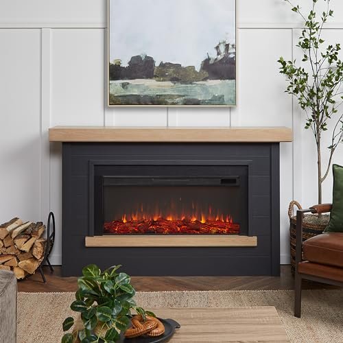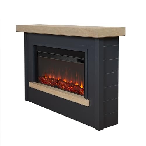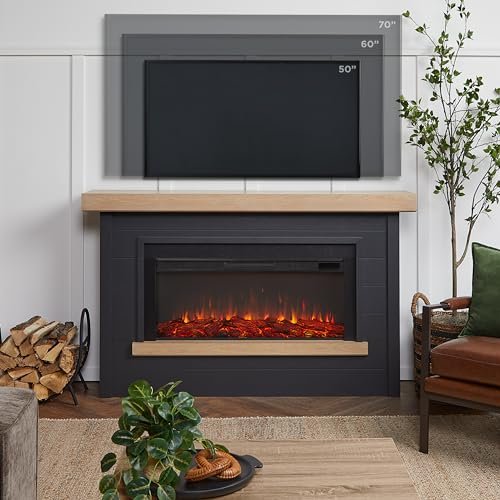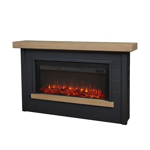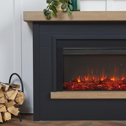 Real Flame Bernice 67″ Landscape Electric Fireplace with Mantel for Living Room or Bedroom, Replaceable Fireplace Insert Heater, Realistic Log and Flame Effect, Remote Control, Timer