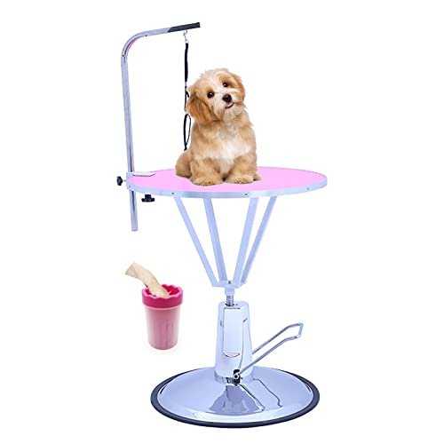 REALN Dog Grooming Table, Height Adjustable Large Pet Drying Desktop, Lift Bathing Desk with Arms, Noose, Maximum Capacity Up to 100kg/200Lb (Color : Pink)