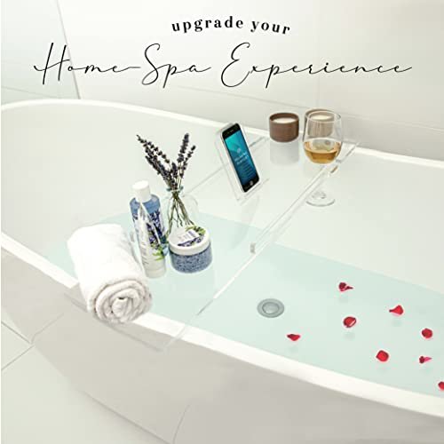 Rebecca Luxurious Bath, 30″ Supreme- Clear Bathtub Tray Caddy Tub Shelf – Spa Board Luxury Bathroom Bath tub Table – Acrylic Tub Caddy Fits Across Bathtubs – Book Rack, iPad and Wine Glass Holder
