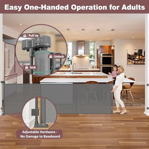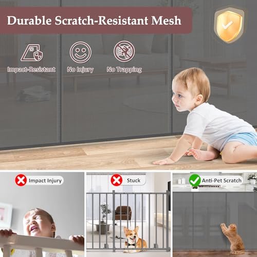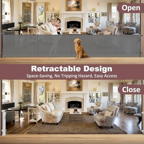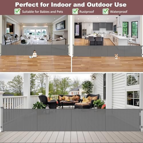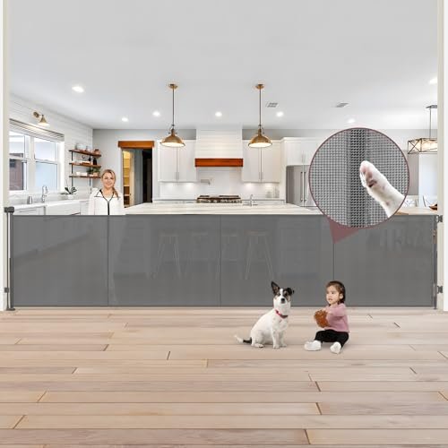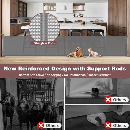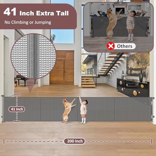 Reinforced 41 Inch Extra Tall Retractable Dog Gate 200″ Extra Wide Retractable Baby Gate with Support Rods, Indoor Baby Fence for Living Room Outdoor Mesh Baby Gate Retractable Gates for Dogs, Gray