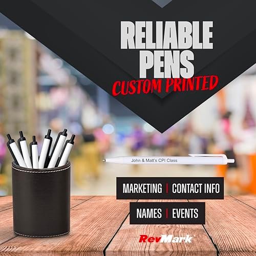 RevMark Personalized Ballpoint Pen, Custom Printed Name, Business or Event Information, Timeless Advertising, USA Made Pens, Promotional Marketing, Smooth Black Ink, Bulk Pack (White,500 Ct.)