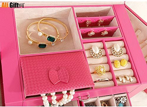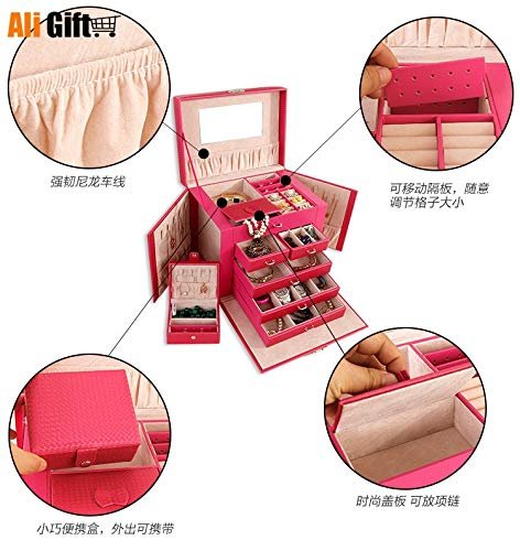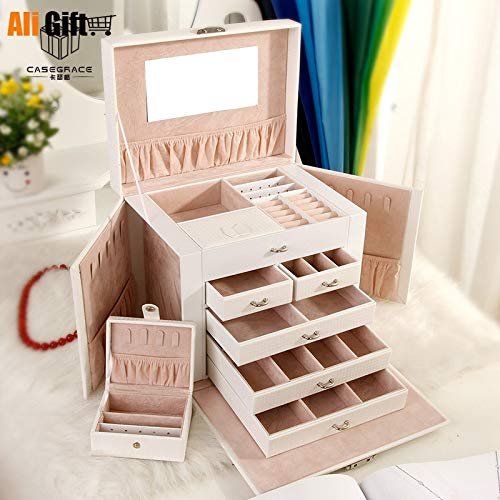 REWEMXLA Jewelry Receiving Box PU Leather Drawer Jewelry Makeup Box Five-layer Large Jewelry Box Portable Case for Jewelry Gift Box – (Color: White)