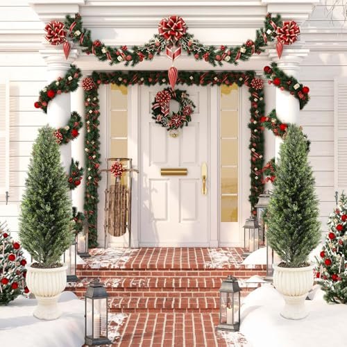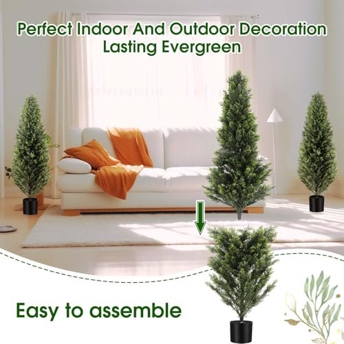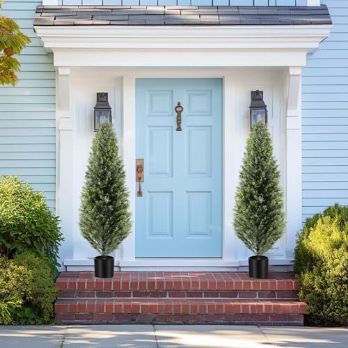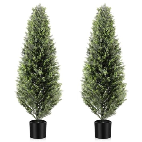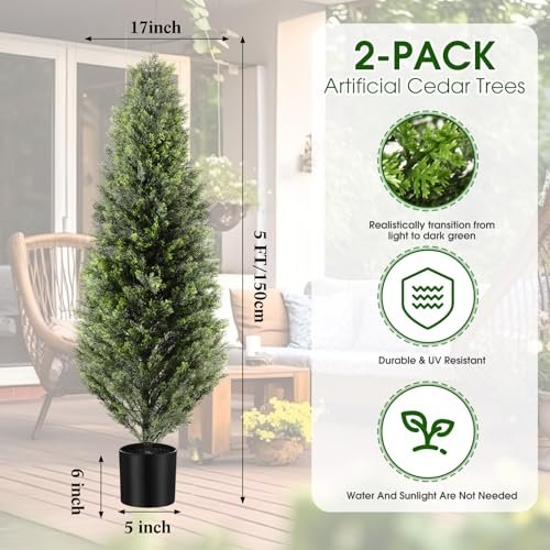 Riceshoot 2 Pcs 5ft Artificial Cedar Topiary Trees for Outdoor Artificial Plants Faux Pine Tree UV Resistant Potted Fake Plants Shrub Bushes for Porch Garden Office Front Door Indoor