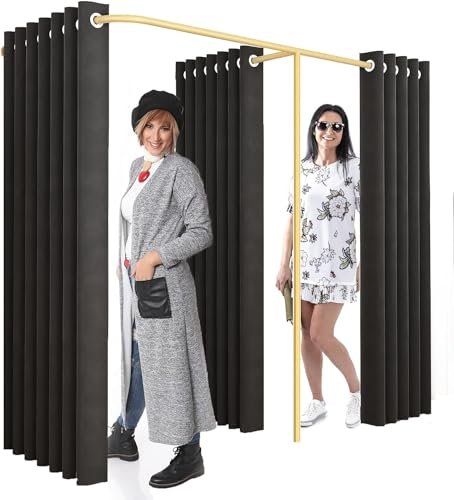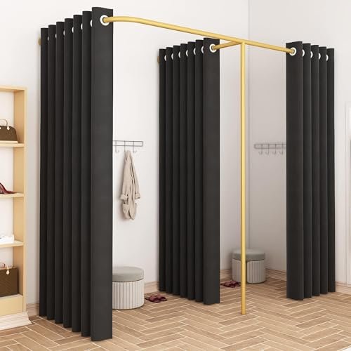 RONSSEN Changing Room Double Fitting Room Clothing Store Boutiques Changing Rooms Divider with 3 Shading Curtains Dressing Room Dressing Room