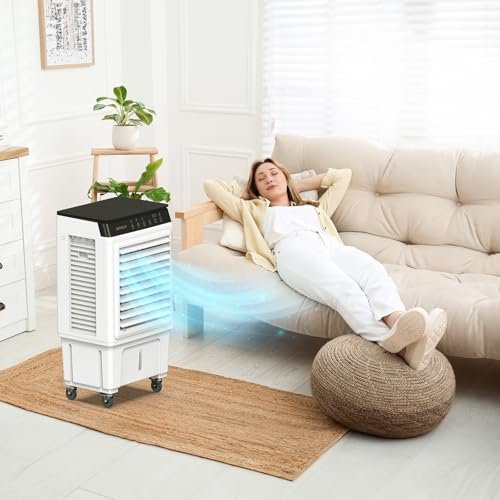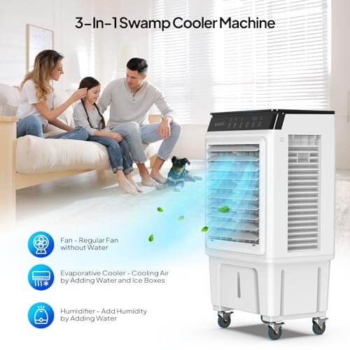 ROVSUN 2300CFM Portable Air Cooler, 7.9Gal/30L Evaporative Swamp Cooler, 3-IN-1 Cooling Fan with Remote Control, 12H Timer & 4 Ice Box, 3 Speeds, Humidifying Oscillating Fan for Indoor or Outdoor