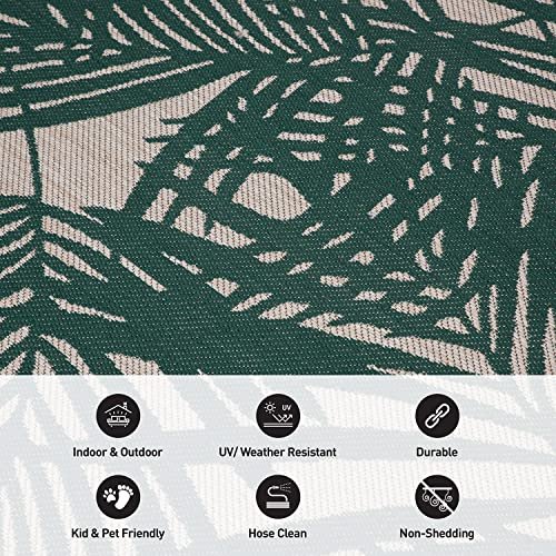 Rugshop Contemporary Palm Leaf Textured Flat Weave Easy Cleaning Outdoor Rugs for Deck,Patio,Backyard Indoor/Outdoor Area Rug 7’10” x 10′ Green