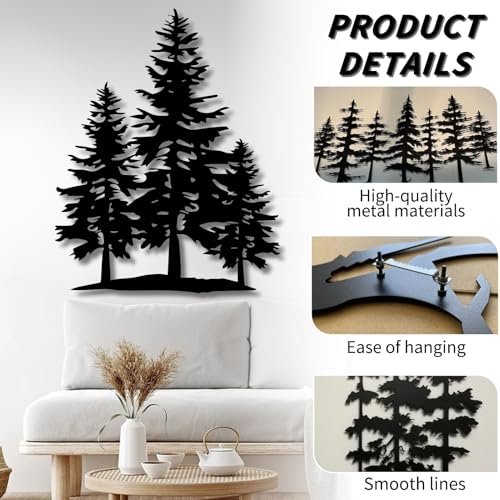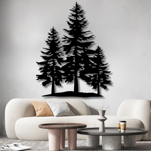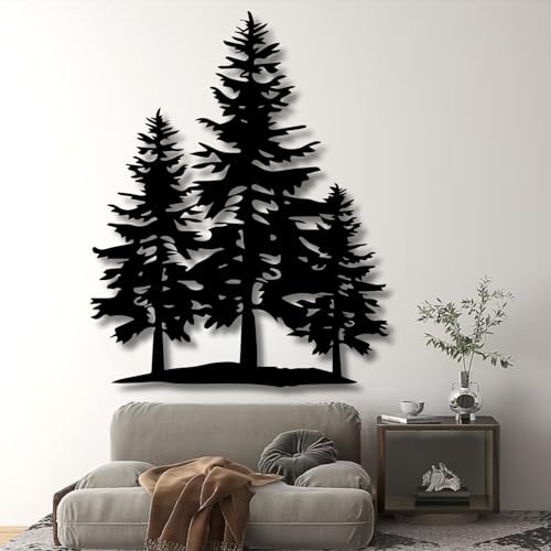 rumloch Metal Pine Tree Wall Art Decor,Nature Forest Metal Decor,Tree Wall Art,Wall Decorations for Living Room,Bed Room,Dning Room,Nature Lover Gift(Black,30″×24″)