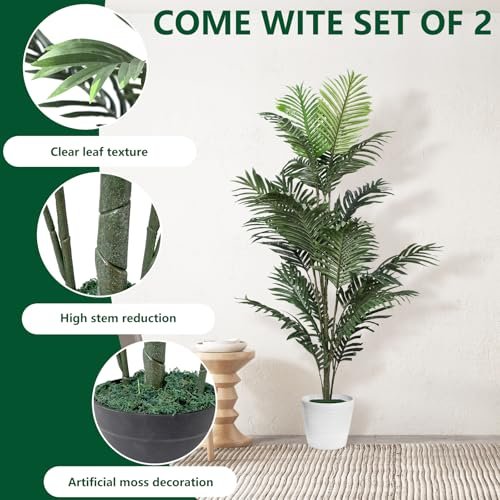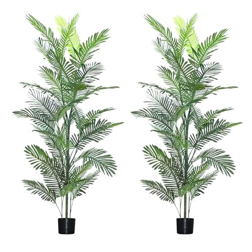 Ruopei 7ft Artificial Palm Trees for Outdoor 2 Pack – Tall Fake Tree for Living Room – Artificial Floor Plant for Living Room Large Tropical Plants Indoor with Pot Bedroom Office Home Decor Outdoor