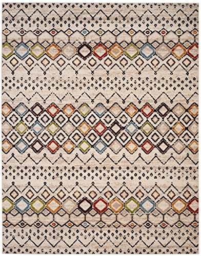 SAFAVIEH Amsterdam Collection Area Rug – 8′ x 10′, Ivory & Multi, Moroccan Boho Design, Non-Shedding & Easy Care, Ideal for High Traffic Areas in Living Room, Bedroom (AMS108K)