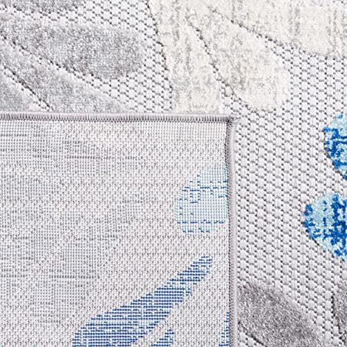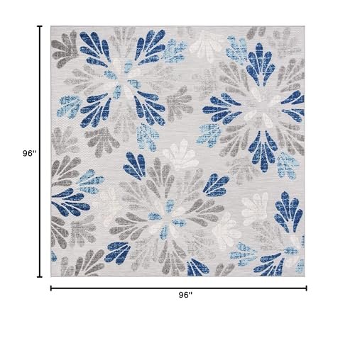 SAFAVIEH Cabana Collection 8′ Square Grey/Blue CBN800F Floral Indoor/ Outdoor Non-Shedding Easy Cleaning Patio Backyard Deck Porch Mudroom Area Rug