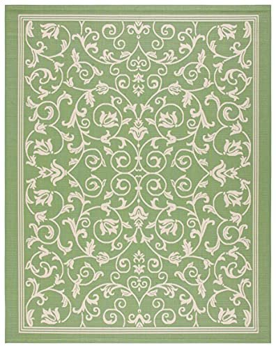 SAFAVIEH Courtyard Collection 8′ x 10′ Olive / Natural CY2098 Scroll Indoor/ -Outdoor -Waterproof Easy -Cleaning Patio Backyard Mudroom Area -Rug