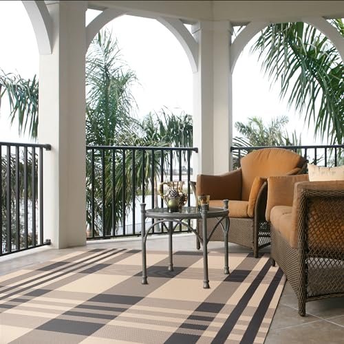 SAFAVIEH Courtyard Collection 8′ x 11′ Grey/Bone CY6201 Plaid Indoor/ Outdoor Waterproof Easy-Cleaning Patio Backyard Mudroom Area-Rug